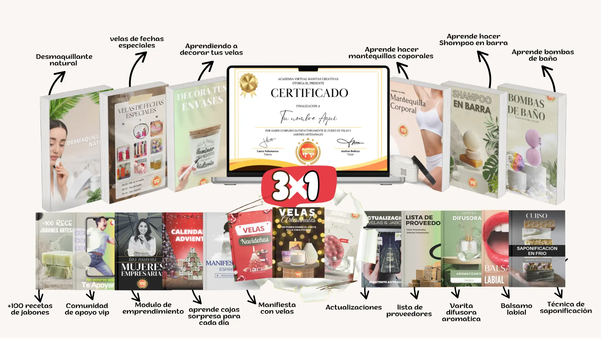 ¡NO SOLO TE LLEVAS EL PROGRAMA DE VELAS Y JABONES ARTESANALES PARA EMPRENDER PREMIUM SI NO QUE TE LLEVAS TODO ESTO!
